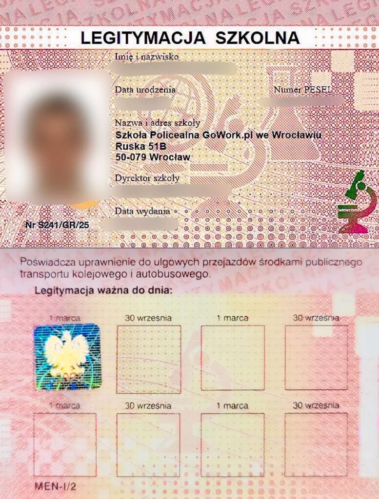 — это удостоверение студента от польской полицеальной школы. Действует в течение 6 месяцев.